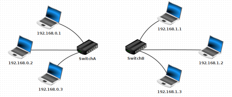 - Lorsque qu'une machine A veut envoyer un message à une machine B, elle va tout d'abord vérifier si cette machine appartient à son réseau local. Si c'est le cas, le message est envoyé par l'intermédiaire du switch qui relie les deux machines.