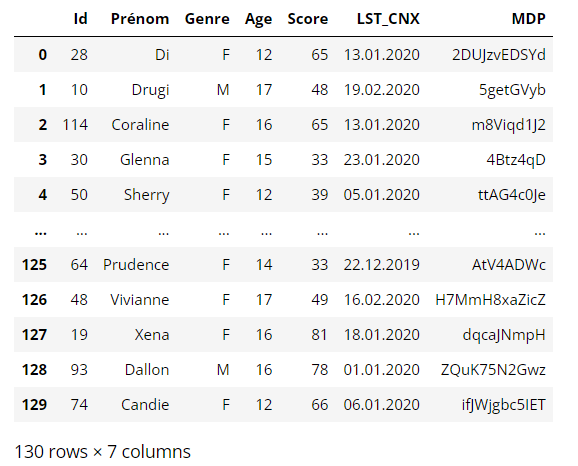 Remarque : Ici chaque 'Id' de la table des scores est présent dans la table des connexions (ce qui est logique car il faut s'être connecté pour jouer et obtenir un score). Néanmoins, si certains scores n'avaient pas été présents dans la table des connexions, l'algorithme aurait tout de même fonctionné.