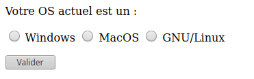 OSva recevoir la valeur choisie et va être transmise par une requête GET à l'url donnée par la variableactiondéfinie en début de formulaire. Ici, le navigateur va donc demander à accéder à la pagepage2.php?OS=MacOS(par exemple) - Le serveur PHP qui héberge la page
