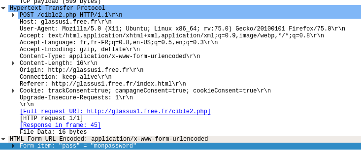 Le contenu de la variable "pass" est donc visible dans le contenu de la requête.